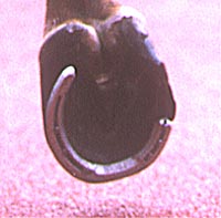 蹄鉄の片端が四分の一短い蹄鉄。裂蹄など、蹄の悪い馬に使用する。